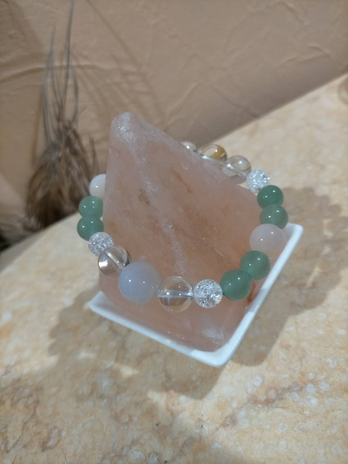 お好みの天然石で男女兼用サイズのブレスレットを作成いたします。紐の長さ17センチで作成するため、女性だと遊びを持ってつけれるサイズ、男性だと丁度良いサイズになります。